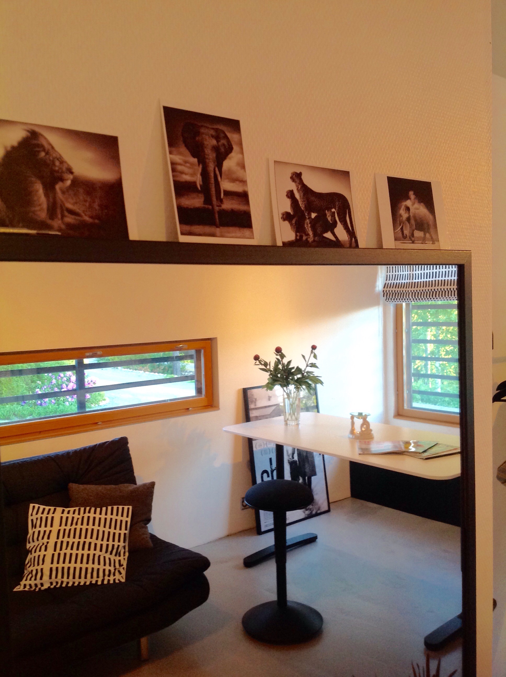 Työhuoneeni on ollut valmiina jo viikon verran. Laitan valmiista työhuoneestani kuvia. Muutamia erityisiä juttuja, joita halusin huoneeseeni, olivat Artekin Siena-kangas, betonilattia sekä Ikean mustavalkoiset kalusteet. Seinälle halusin Pawel Pawlikowskin Ida-elokuvan julisteen sekä valokuvaaja Nick Brandtin valokuvista tehtyjä kortteja. Molemmat ovat tehneet minuun erityisen vaikutuksen tänä vuonna.