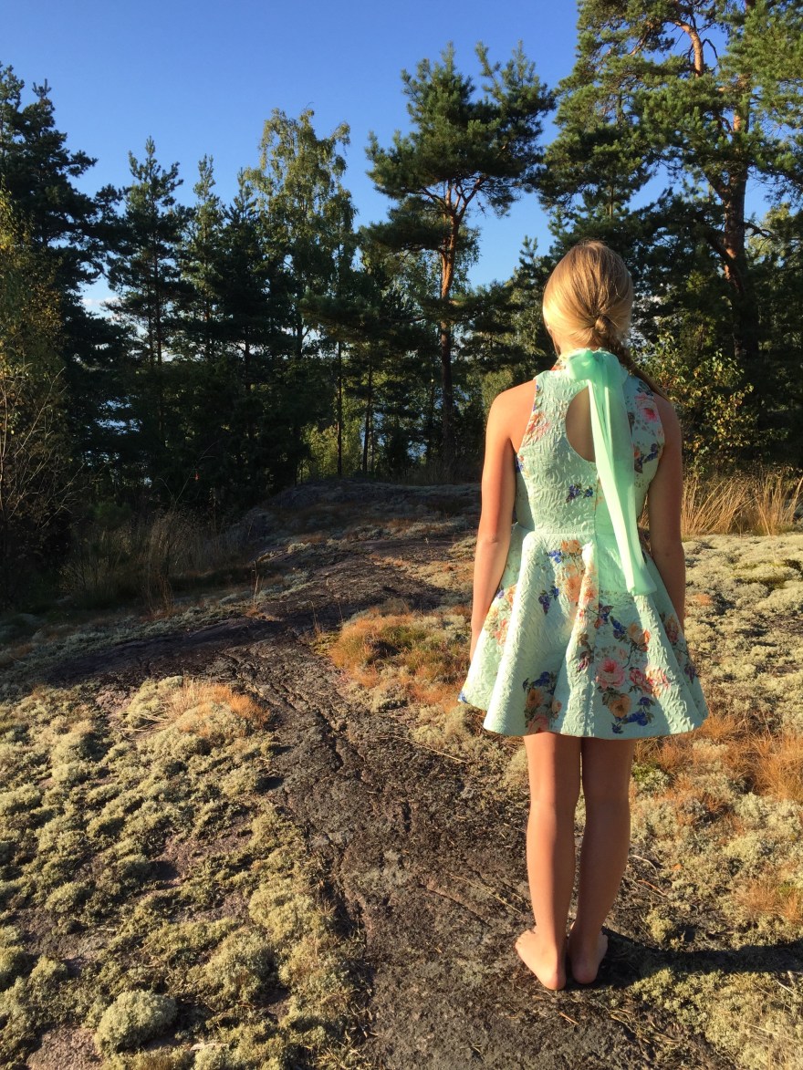 Joskus asiat vaan etenevät parhaalla mahdollisella tavalla kiireestä huolimatta. Niin kävi tämän tilaustyön kanssa. Ensimmäinen viesti mekkohuolesta taisi tulla muutama viikko sitten. Kankaat hankimme viime maanantaina ja itse mekon ompelin tänä aamuna.