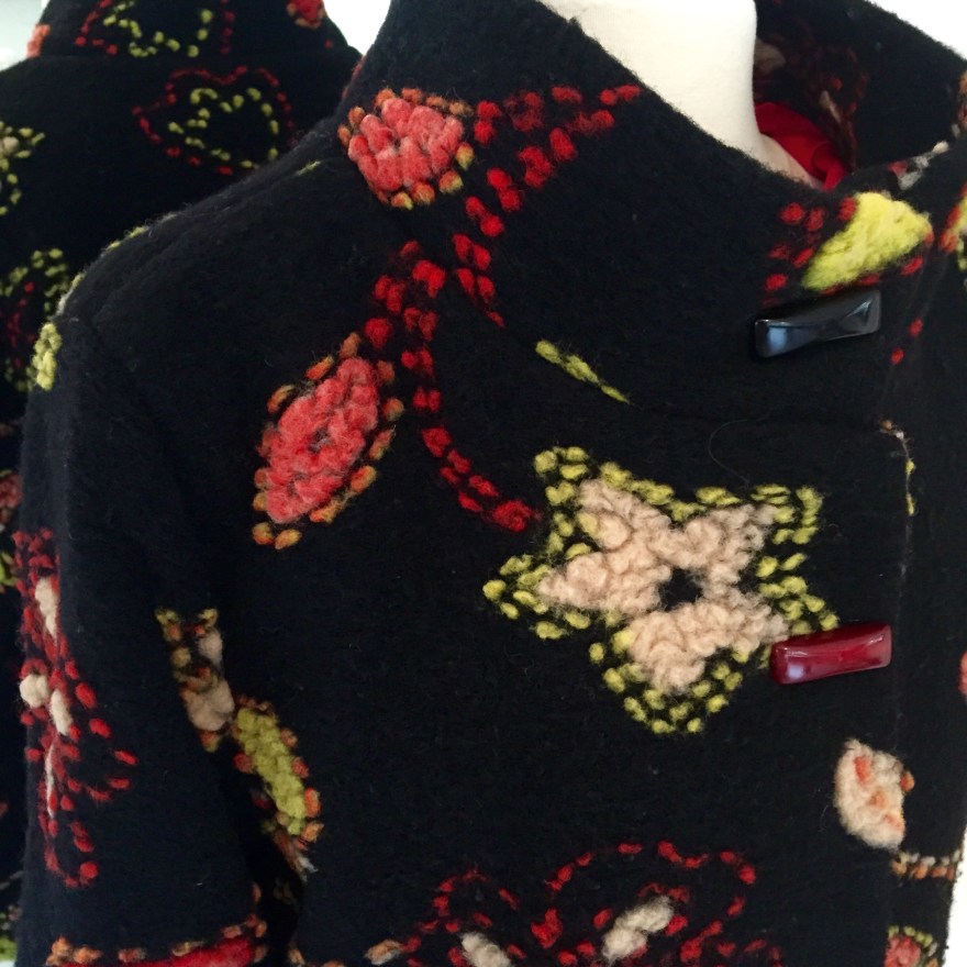 Näin sai siis tämäkin vanha takki uuden elämän. Takin kaunis kangas toimii edelleen ja mallikin on melko ajaton. Takin mukana kulkee muisto äidistä – äidin halaus.