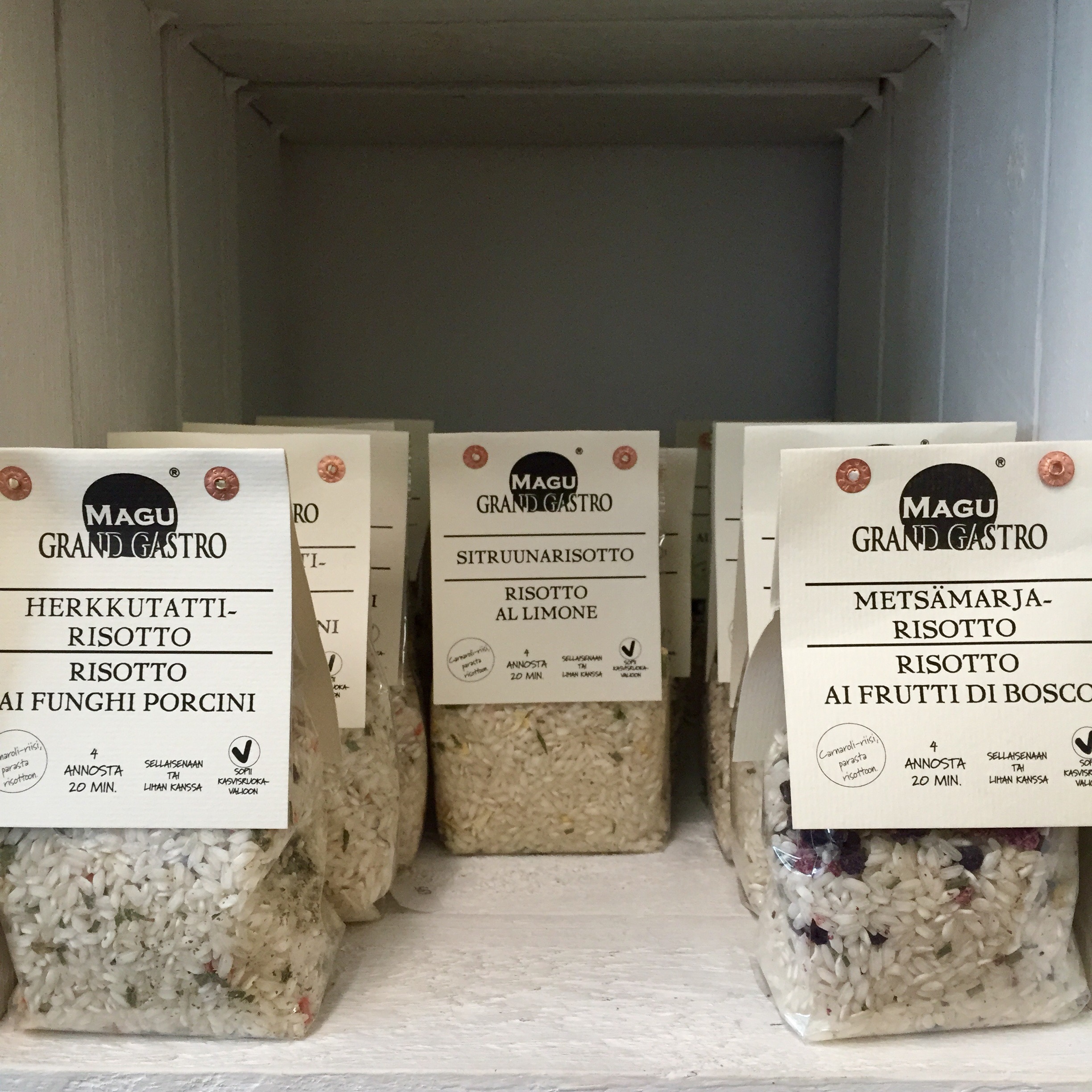 Olen jo vuosia ollut erilaisten risotoiden ystävä. Syksyllä sieniaikaan ja keväällä parsa-aikaan risotot kuuluvat ehdottomiin suosikkiruokiin, joita valmistan. Herkku ja lahja murenasta löytyykin runsas valikoima erilaisia italialaisia herkkuja risotoista pastaan ja öljyistä suolaan.